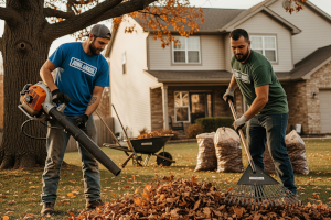- Fall leaf removal: We'll rake, bag, and haul away all the fallen leaves, preventing damage to your lawn.